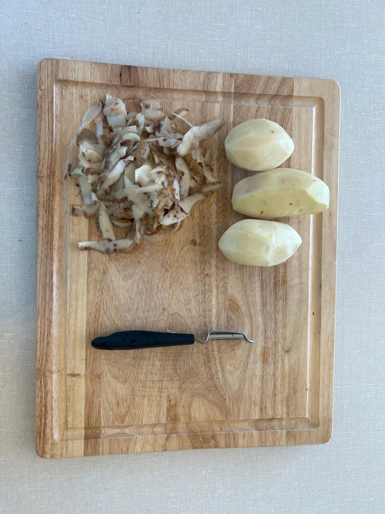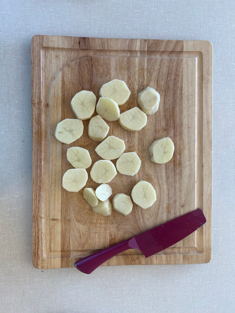 - 3 Large Russet Potatoes (Washed, Dried, and cut into 1/4inch “Dollar” slices