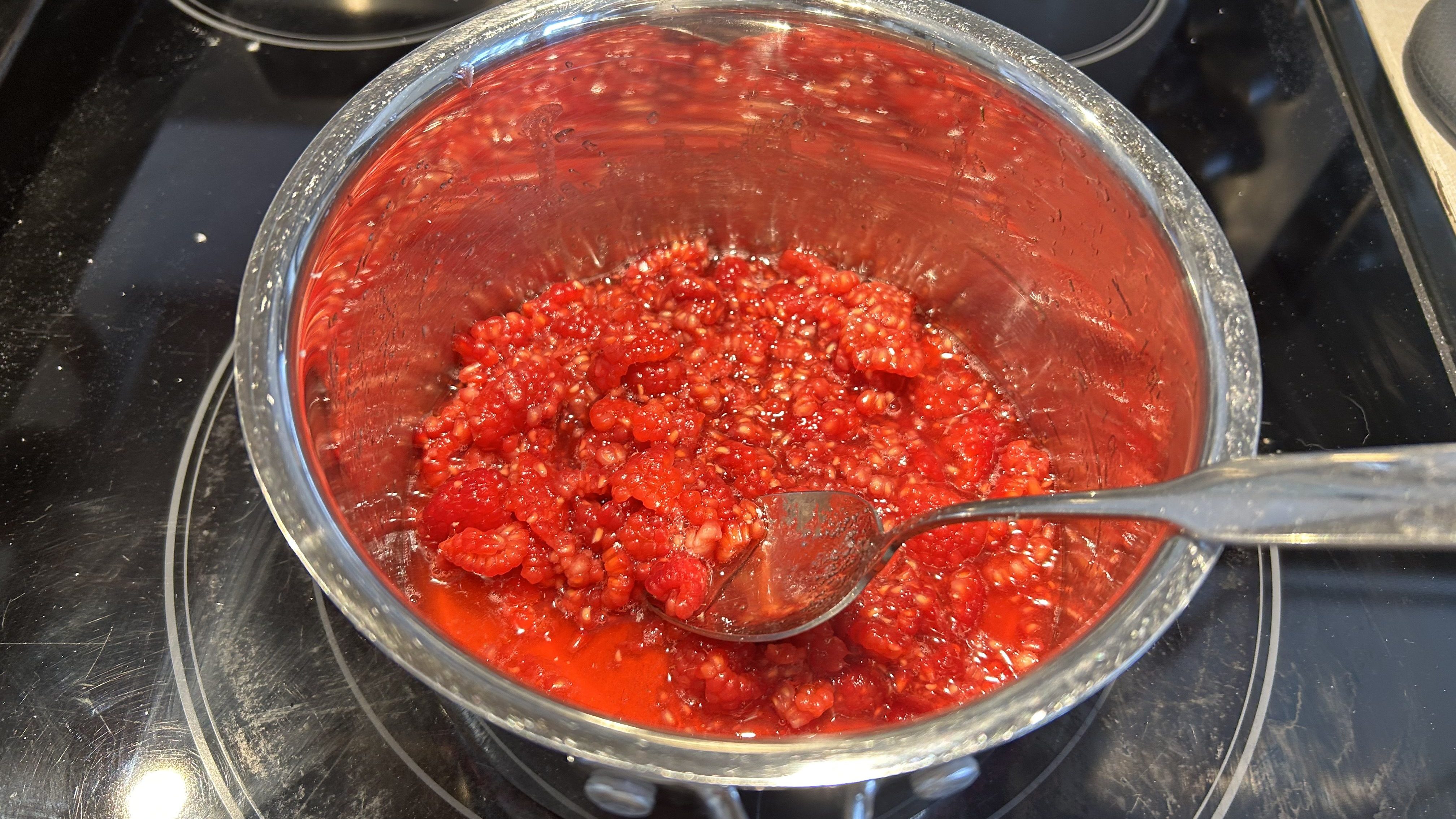 - In a saucepan, combine the raspberries, sugar, and lemon juice. Heat over medium heat until the raspberries break down and the mixture is simmering.
